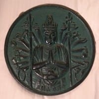 En un viaje a Japón compré este plato en una tienda de objetos de segunda mano. Me gustaría saber su procedencia y antigüedad, así como la traducción de las letras que lleva inscritas. Debe tener unos 20 cm de diámetro y en origen debía colgar de una...