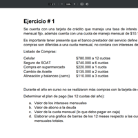 Durante el año en curso no se realizaron más compras con la tarjeta de crédito. Determinar el plan de pago (las 12 cuotas del año): a. Valor de los intereses mensuales b. Valor de abono a la deuda c. Valor de la cuota mensual (lo que debo pagar en...