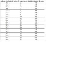 Se desea modelar el salario de los profesores (y) en cierta región. La única información disponible son los años de experiencia (x1) y las calificaciones que el director (x2) otorga a los docentes al final de cada ciclo escolar. Construye la tabla...