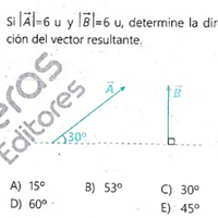 Si A=6 u y B=6 u, determine la dirección del vector resultante.