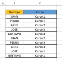 En la columna B, tengo una gran cantidad de Nombre y Apellido En la columna C, tengo una cantidad definida de "cursos", es decir, nombres de cursos (Curso 1, curso 2... Etc) Lo que necesito, es que en otra hoja, donde tengo TODA LA NOMINA posible de...