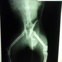 Gato fracturado con tutor externo