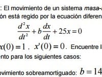 Desarrollar el siguiente caso Caso 3: Movimiento sobreamortiguado:b =14