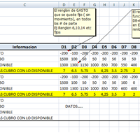 Hola Dante! Experto , Ojala pudieras ayudarme a resolver este problema Una Macro que me de la proyección de lo disponible en función a lo que recibo por día y que lo calcule para 600 números de parte y 12 días de revisión, que los renglones que dicen...