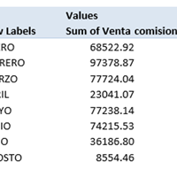 Tengo una tabla dinámica que quiero copiar y pegar en formato de tabla agregando otra columna que se llame comisiones, básicamente solo estaría multiplicando la columna sum of venta por 1.30 Intente primero copiar y pegar la tabla para ir probando...