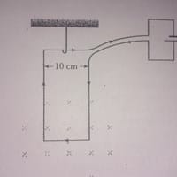 Un lazo rectangular con dimensiones de 10.0 cm x 20.0 cm esta suspendido por medio de una cuerda, y la sección inferior horizontal del lazo se encuentra inmersa en un campo magnético confinado a una región circular. Si se mantiene una corriente de 3A...