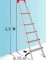 Una escalera de 2,5 m se apoya en una pared, de modo que el pie de la escalera se encuentra a 0,75 m de esa pared.