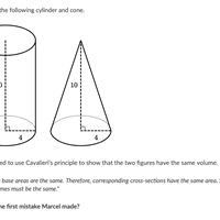 Considere el siguiente cilindro y cono.Marcel intentó utilizar el principio de Cavalieripara demostrar que las dos figuras ...