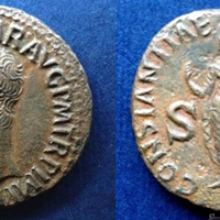 Tengo algunas monedas antiguas, entre ellas tengo una moneda romana de la Roma Imperial: Claudio y Constancia, acuñada 42-43 DC