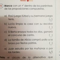 Yo hice esta tarea de marcar con un check todas las proposiciones compuestas, pero no se si estará bien. Marque la a y e bien.