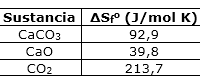 24. Calcular el cambio de entropía estándar resultante de la descomposición de una mol de carbonato de calcio sólido para formar