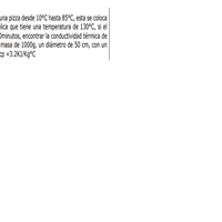 Con el fin de calentar una pizza desde 10°C hasta 85°C, esta se coloca sobre una placa metálica que tiene una temperatura de 130