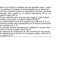 Realizar la conversión de unidades para los siguientes casos, y defina con sus palabras el concepto de las propiedades.