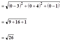 Encuentra la distancia del punto (3,-4,1) al origen de coordenadas