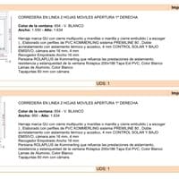 En el presupuesto indicaba lo siguiente: Ventana de 2 hojas practicables PVC blanco dos caras. Serie PVC Shuco Corona CT70 Visión+Capialzado de PVC 200x185 con aislante. Lama de aluminio madera oscura, recogedorr empotrado en marco. Climalit 4/16/4...