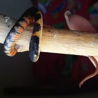 Quiero asegurarme de su especie según lo que he investigado en Internet parece ser una serpiente de peñarol o verde y negra, aunque esta es mas amarillo pálido y negra pero debajo también tiene color naranja; y también quisiera saber que come y cada...