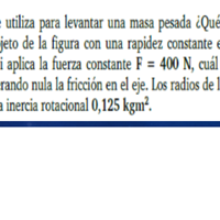 Me gustaría que me ayudaran a resolver el siguiente problema: Los bloques de masas m1=m2=1kg están conectados por una cuerda ligera que pasa por una polea . Se aplica una fuerza de F=20N a m2, quien se desplaza sobre un plano horizontal rugoso. Halle...