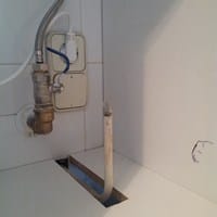 Quería cambiar la cocina de la casa que he comprado, pero al tomar las medidas para poner un frigorífico más alto que el que tiene, me encuentro con que bajo el termo eléctrico hay un tubo estrecho que hace ángulo que va a la tubería de la pared, y...