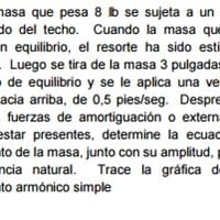 Una masa que pesa 8 lb se sujeta a un resortesuspendido del techo. Cuando la masa queda enreposo en equilibrio,