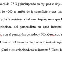 Un paracaidista cuyo peso es de 75 Kg (incluyendo su equipo) se deja caer de un avión que se mantiene a una altura de
