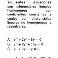 Indique cuáles de las siguientes ecuaciones son diferenciales lineales homogéneas
