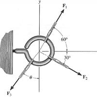 3. Las tres fuerzas concurrentes que actúan sobre la armella roscada producen una fuerza resultante