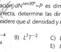 Si la ecuación dnsen30 =p es dimensionalmente correcta, determine las dimensiones de /^considere que d: densidad y p: presión