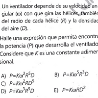 Un ventilador depende de su velocidad angularcon que gira las hélices, también del radio de cada hélice y la densidad...