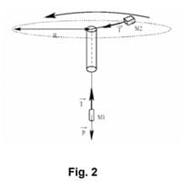 Mediante análisis de fuerza ( ver Fig. 2) muestre que el radio de giro en función del periodo, para un movimiento circular