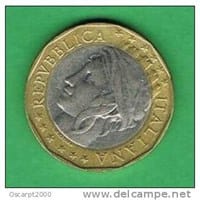 República Italiana Valor facial 1000 liras Año 1997 Bimetálica: centro de Cuproníquel, anillo de Bronce de Aluminio. Estriado discontinuo 8,8 gramos y 27 milímetros La marca de fábrica es R (Roma). Ese año se acuñaron 80 millones de monedas, su valor...
