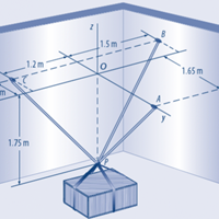 Una caja de madera se sostiene por medio de tres cables AP, BP y CP en la forma mostrada en la figura. La tensión en el cable AP es de 45 nK, determine el peso de la caja de madera.