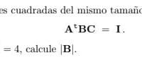 Como se puede encontrar el valor de un B si me dan los valores de los determinantes A y C verificar la relación A^tBC= I