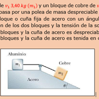 Un bloque de aluminio de v_1 kg (m_1 ) y un bloque de cobre de v_2 kg (m_2) se conectan de una