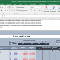 Calcular precio a plazos en meses teniendo en cuenta la tabla de intereses(meses/interés)