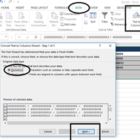 Usa la fórmula extraer =derecha(celda donde estan los datos;cantida de digitos necesitas ) en espanol la funcion seria =derecha(a1;10) 54111552187946 = 1552187946 5434891522786580 = 1522786580 54111527851542 = 1527851542