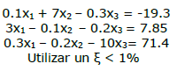 Ejercicios de Métodos numéricos. 1. Sistema de ecuaciones utilizando el Método de Gauss-Seidel.