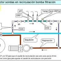 La cloracion automática (supongo que a través de una bomba peristaltica e inyectores) se realiza en la tubería de impulsión a unos 70 cm o más de donde hayas instalado las sondas de medida de PH y Redox, es decir, primero se instalan las sondas y...
