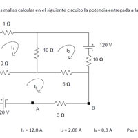 Por el método de las mallas calcular en el siguiente circuito la potencia entregada a la resistencia de 3 Ω ¿?