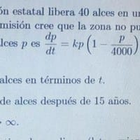 A) El modelo para la población de alces en términos de t. B) Una estimación de la población de alces después de 15 años. C) El límite del modelo cuando t ---> más infinito.