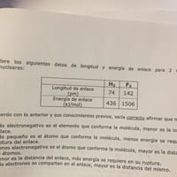 Considere los siguientes datos de longitud y energía de enlace para 2 moléculas homonucleares