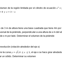 Encontrar el volumen del solido de la revolución generado al rotar sobre el eje x