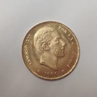 Moneda de oro Alfonso XII 1881 de 25 pts