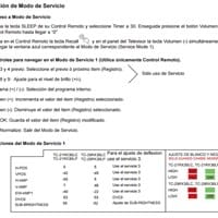 Creo que hemos tenido la fortuna de que en el manual de usuario de tu televisión figuran los pasos/códigos para acceder al modo servicio (posée tres modos diferentes, y dos opciones para utilizar o no el mando a distancia). Este es el manual en .PDF,...