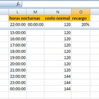 Fórmula excel para horas extras nocturnas de 22 a 06