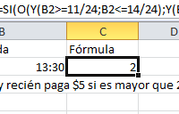 Fórmula para calcular viáticos entre horas de almuerzo y cena