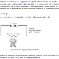 Si tenemos en cuenta que la carga Q en el capacitor de un circuito RLC queda descrita por: Lq̈(t)+Rq̇(t)+1/C q(t)=E(t), donde