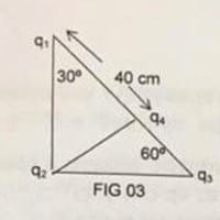 En la siguiente figura, se tienen tres cargas: q 1 = - 6 µC; q 2 = 8 µC; q 3 = - 5 µC. Calcular la fuerza resultante sobre la carga q 1 debido a las otras dos. Calcular la fuerza resultante sobre la carga q 2 debido a las otras. Calcular la fuerza...
