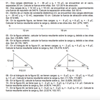 01.- Calcular el campo eléctrico experimentado por una carga eléctrica de – 5 μC, cuando siente una fuerza de F = (20N; 185o). Sol: (4M N/C; 5o). Y si la carga es 2 μC. Sol: (10M N/C; 185o). 02.- Calcular el campo eléctrico experimentado por una...
