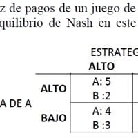 La tabla siguiente muestra la matriz de pagos de un juego de publicidad. Explique porque el par de estrategias “A: alto, B:bajo” es un equilibrio de Nash en este juego, y porque los demás pares de estrategias no lo son.