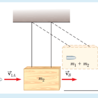 Un proyectil de masa 95,3 g se dispara hacia un gran bloque de madera de masa 3,4 kg suspendido de unos alambres ligeros. El proyectil se incrusta en el bloque y todo el sistema se balancea hasta una altura 31,6 cm. Determine la rapidez del proyectil...